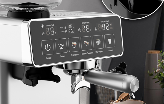 Moulin à café intégré et réglable pour personnaliser la mouture de chaque café.